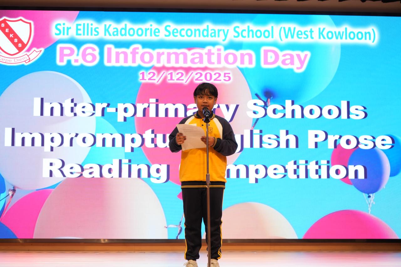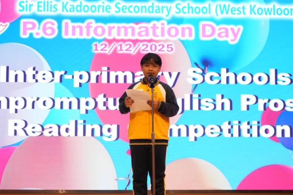 2025-12-12 學生在12月12日參觀了官立嘉道理爵士中學(西九龍)。三位學生更被選為代表參加校際即興朗誦比賽,展現他們的英語表達能力。學生也參觀了家政室及化學室等特別室,親身體驗了不同的趣味活動,讓他們體驗中學的校園生活,對中學的學習環境有了更深刻且溫暖的體會。