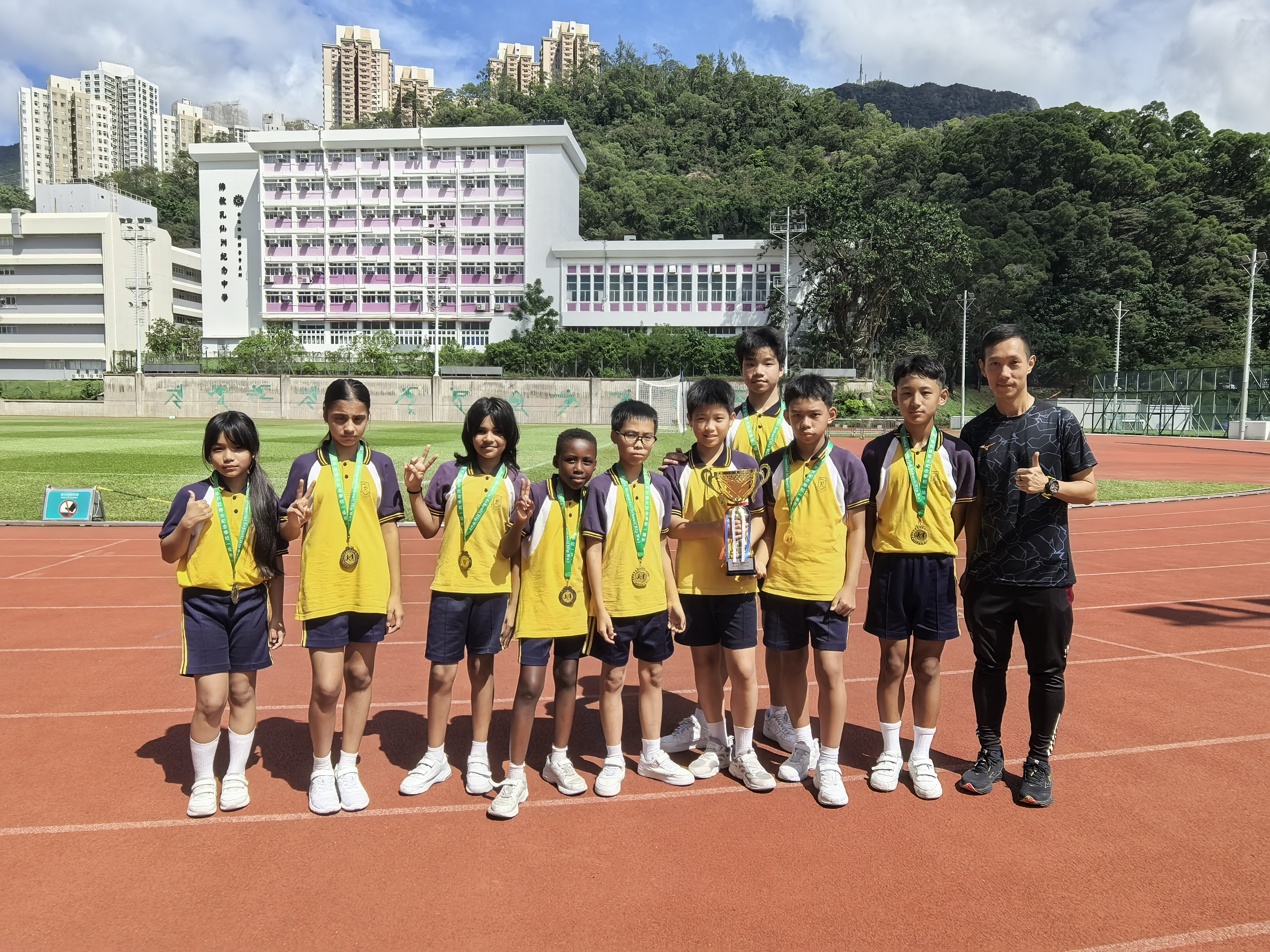 舉辦的友校接力賽。同學們充分發揮訓練的成果,女子組奪得優異獎,男子組奪得冠軍,表現出色。