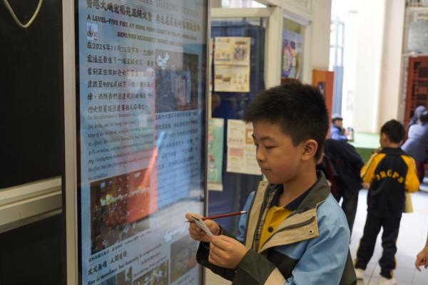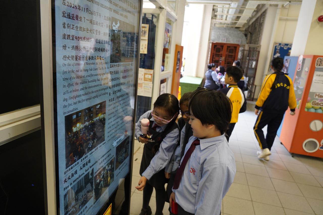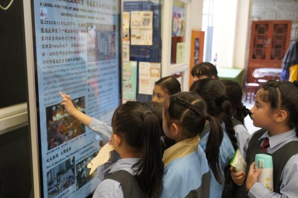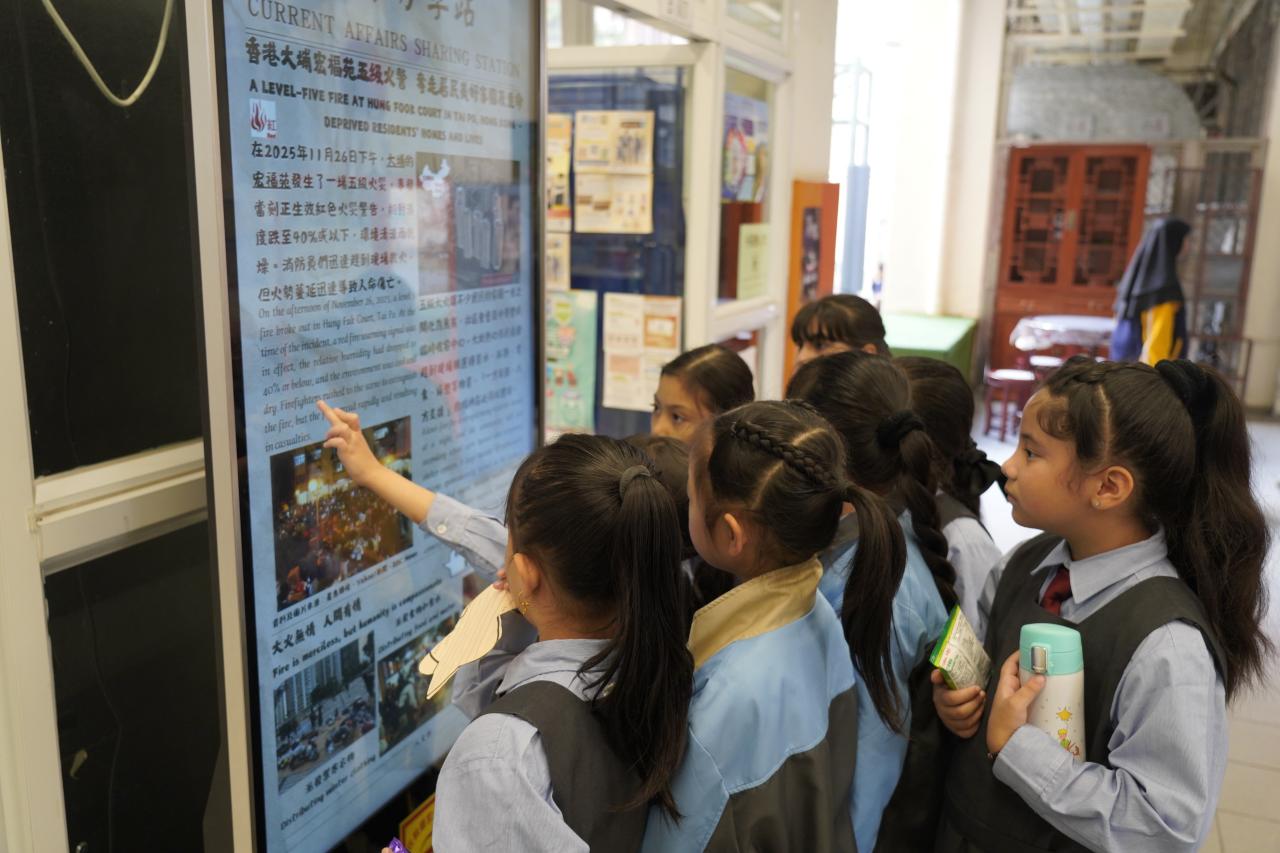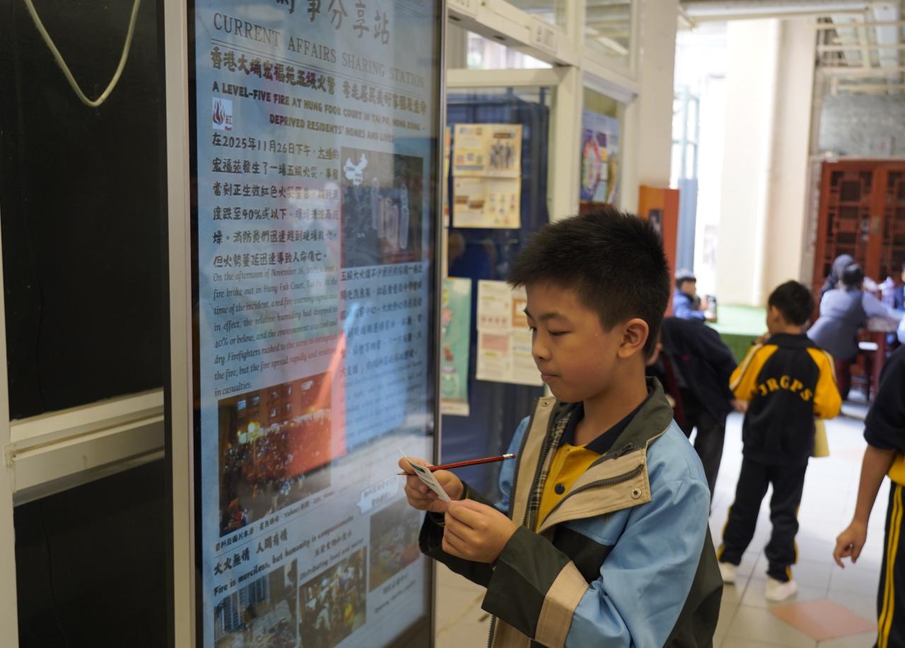2025-12-17 為提升學生對時事的關注,本科於禮堂舉行「時事分享站」活動,12月內容為「香港大埔宏福苑五級火警」。學生於小息期間觀看精選及貼近生活的新聞片段,並即時填寫「新聞背後」思考卡,就新聞內容作出理解、分析及個人反思,並為災民獻上心意。