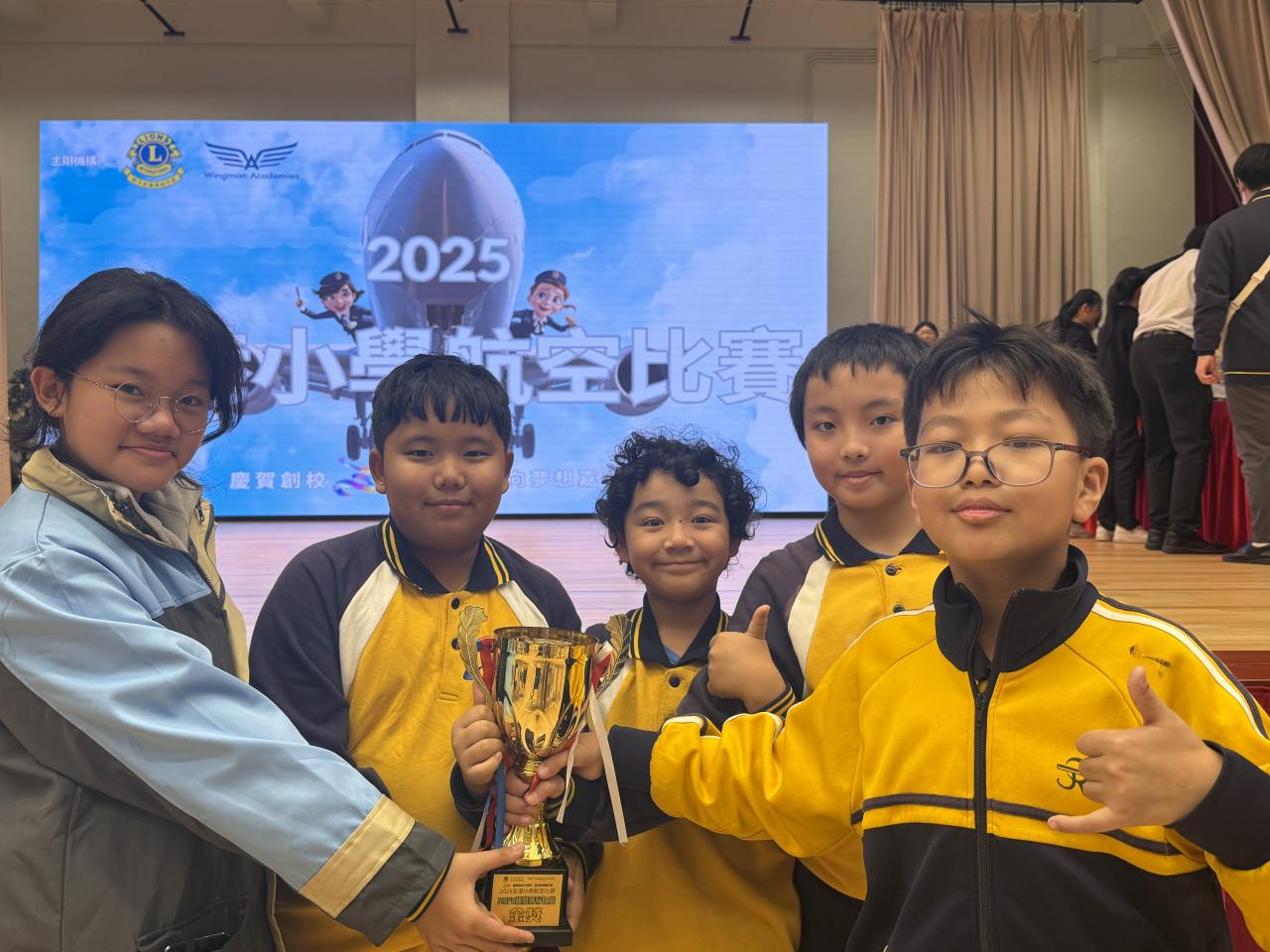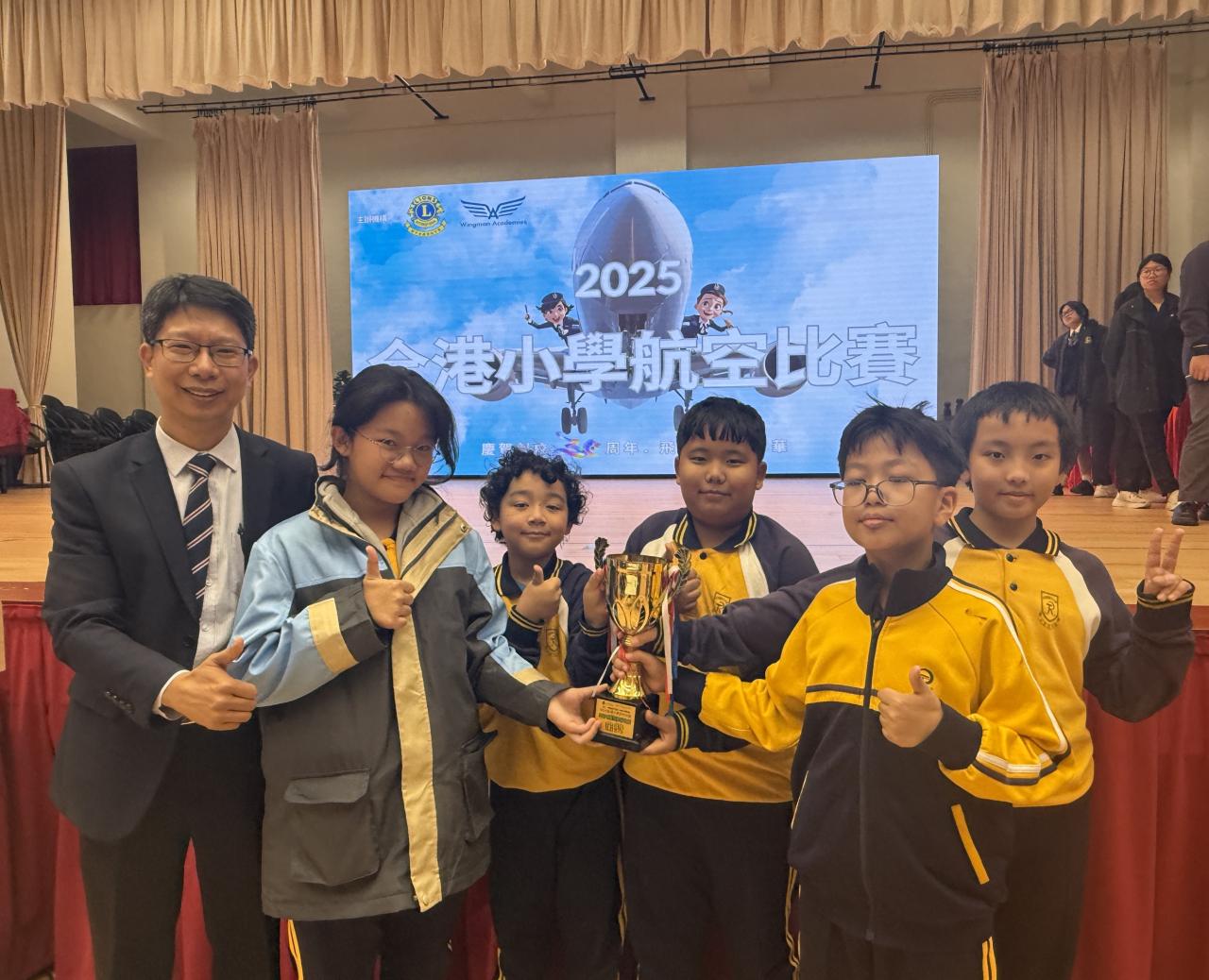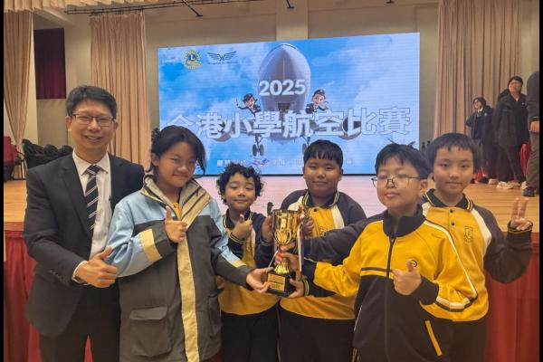 2025-12-05 本校派出5位同學參與由獅子會蔣翠琼中學舉辦的「2025 全港小學航空比賽」,同學在活動中學習了不少航空知識,更在20多間學校中脫穎指出,獲得MS Flight Simulator 模擬飛行比賽金獎。