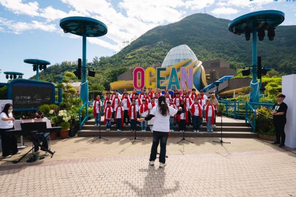 合唱團成員到海洋公園參與由海外合唱指揮舉辦的合唱體驗,並為園内人士表演合唱歌曲。