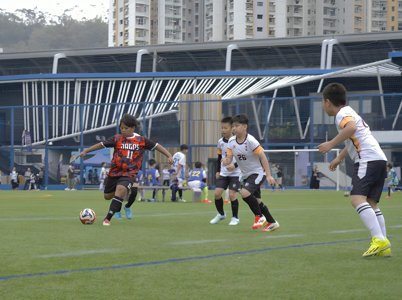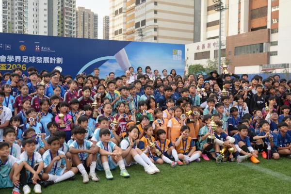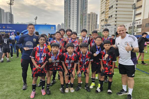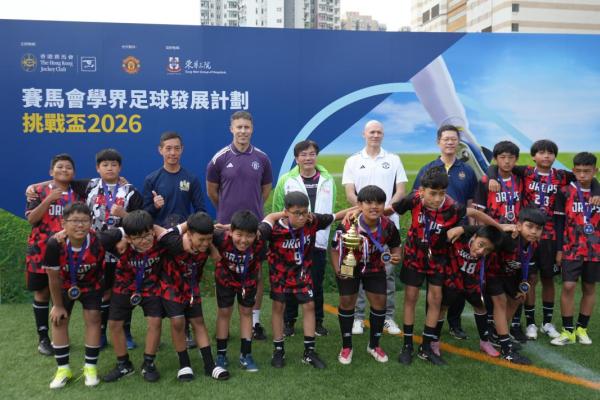 2026-03-08 本校足球隊初次參與賽馬會學界足球發展計劃挑戰盃,球隊在兩天比賽日共進行六場比賽,取得五勝一負的佳績奪得盃賽季軍。除參與比賽外,同學們最興奮的時刻是與曼聯名宿朗尼莊臣(Ronny Johnsen)交流,享受足球的樂趣。