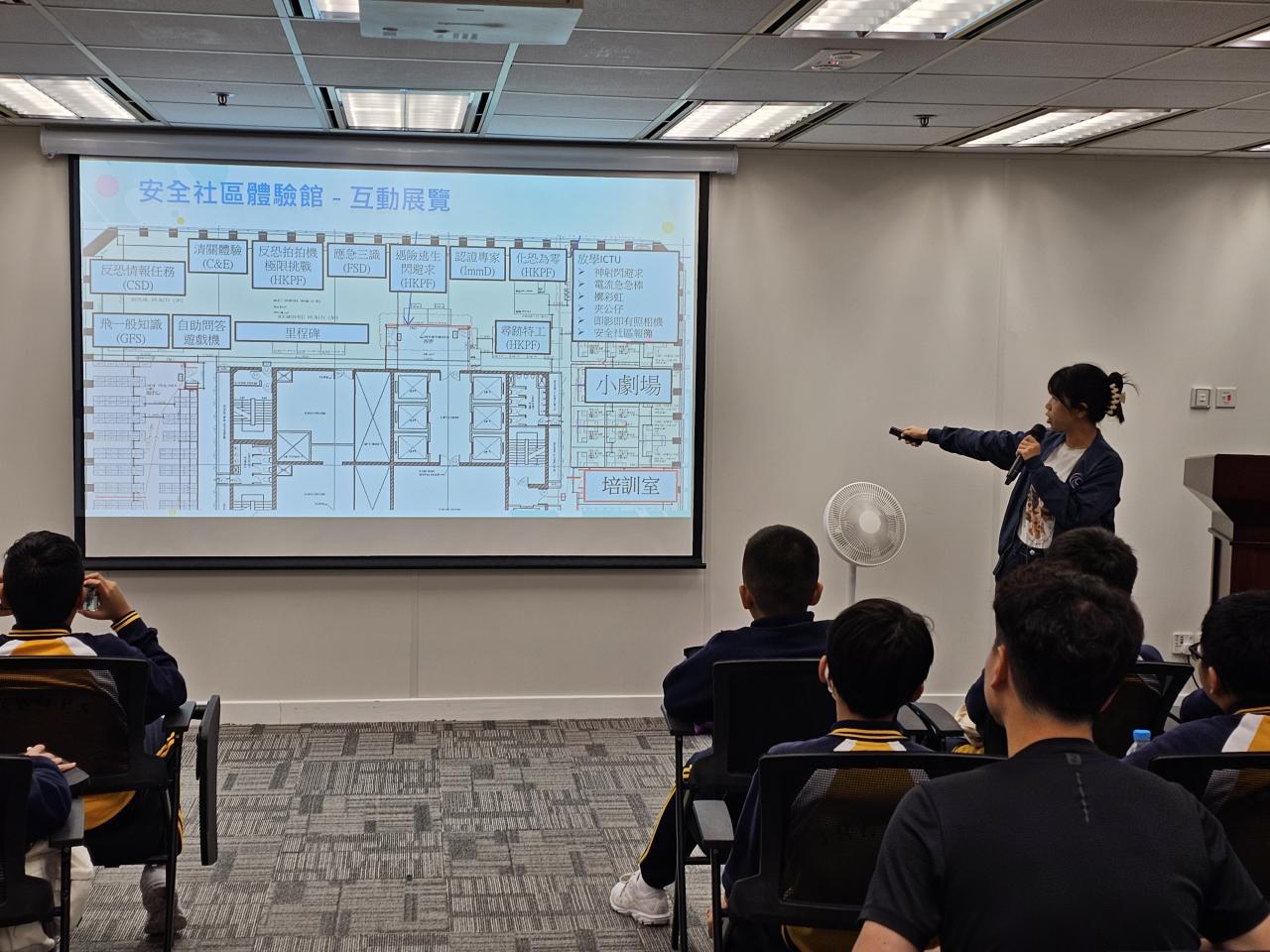 本校老師安排風紀參觀跨部門反恐專責組「安全社區體驗館」,讓學生認識紀律部隊的工作、展開生涯規劃並建立正向價值觀。