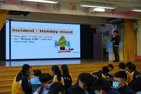 2025-02-19 本校 體驗式理財活動 – 畢業之旅(理財版)活動簡介:透過本活動,學生能夠體驗中學畢業之後需要面對的生活選擇,包括進修、求職、應付生活開支等。此外,學生亦能認識自身的理財習慣、制訂理財目標,學習人生不同階段的理財需要。