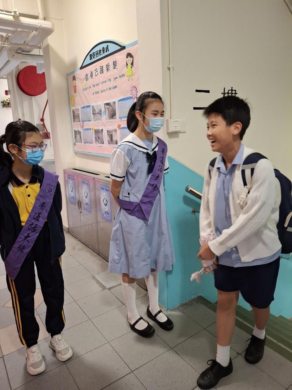 普通話日當天,普通話大使會在早上八時至八時二十分,向進入學校的學生用普通話説聲:「早上好!」,進校的學生也會以普通話回應「早上好」,這樣可以增進本校學生聽説普通話的機會和能力。
