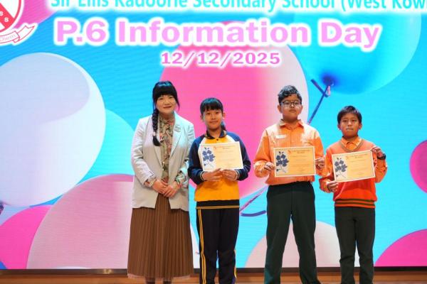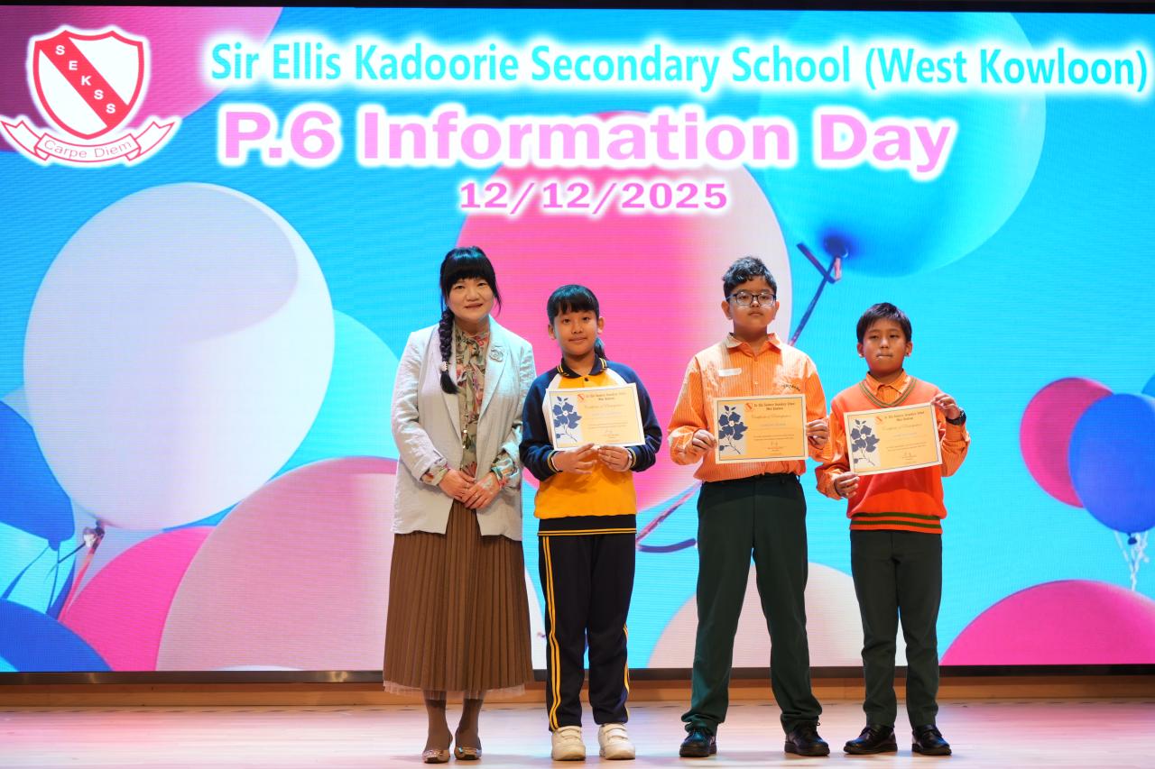 2025-12-12 學生在12月12日參觀了官立嘉道理爵士中學(西九龍)。三位學生更被選為代表參加校際即興朗誦比賽,展現他們的英語表達能力。學生也參觀了家政室及化學室等特別室,親身體驗了不同的趣味活動,讓他們體驗中學的校園生活,對中學的學習環境有了更深刻且溫暖的體會。
