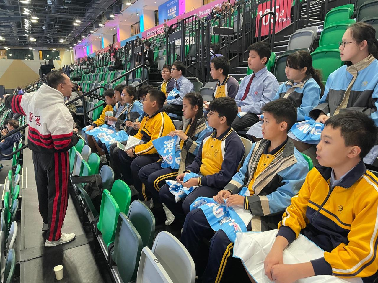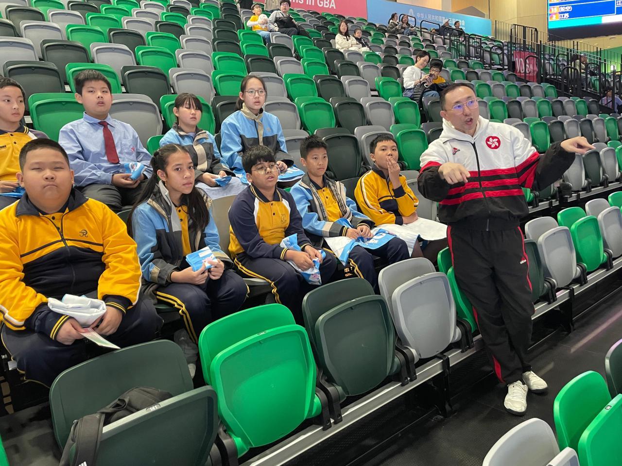 體育科老師帶領學生到啟德主場館觀賞第十五屆全國運動會擊劍比賽,支持香港代表運動員,提升對香港的歸屬感。