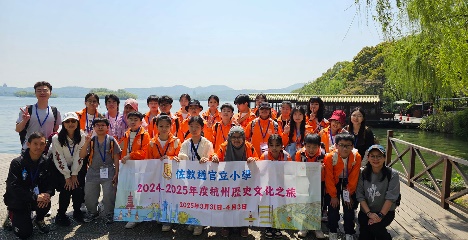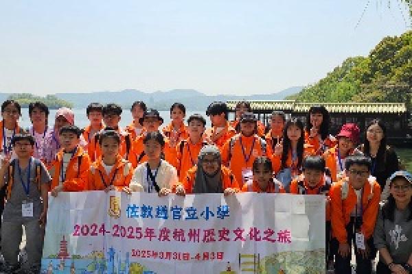 本校與宜興市官林實驗小學締結為姊妹學校,為增進兩地學生溝通交流,加深兩地文化認識,本校於2025331 (星期一202543 (星期四舉辦「杭州四天歷史文化之旅」,並已選拔了24名五年級和六年級學生代表成為「文化大使」,由本校教師帶領親赴杭州進行文化交流。